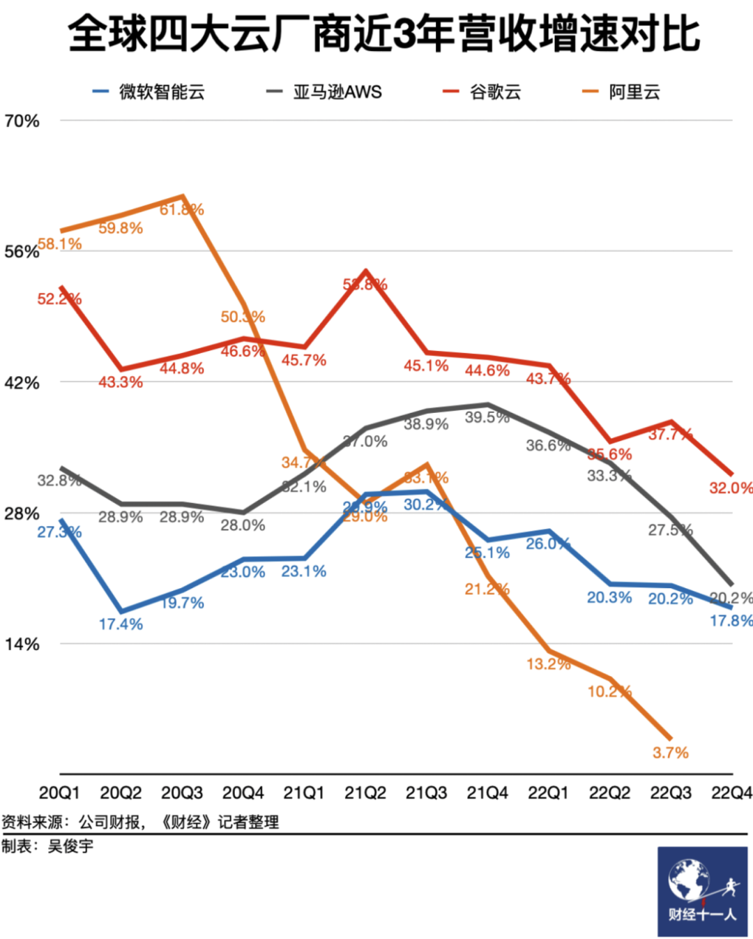 时来天地皆同力,运去英雄不自由:在泡沫阶段,大家可以不在乎在云上大撒币,在经济下行阶段,降本增效成为核心议题。越来越多的公司意识到,使用云服务其实是一种缴纳“无专家税”与“保护费”的行为。行业也出现了下云的思潮 —— 云遣返,37 Signal DHH就是最著名的例子。与之对应,全球各大云厂商营收增速也出现了持续性下滑,阿里云的营收甚至已经增速为负 —— 开始负增长了(2023Q1)。