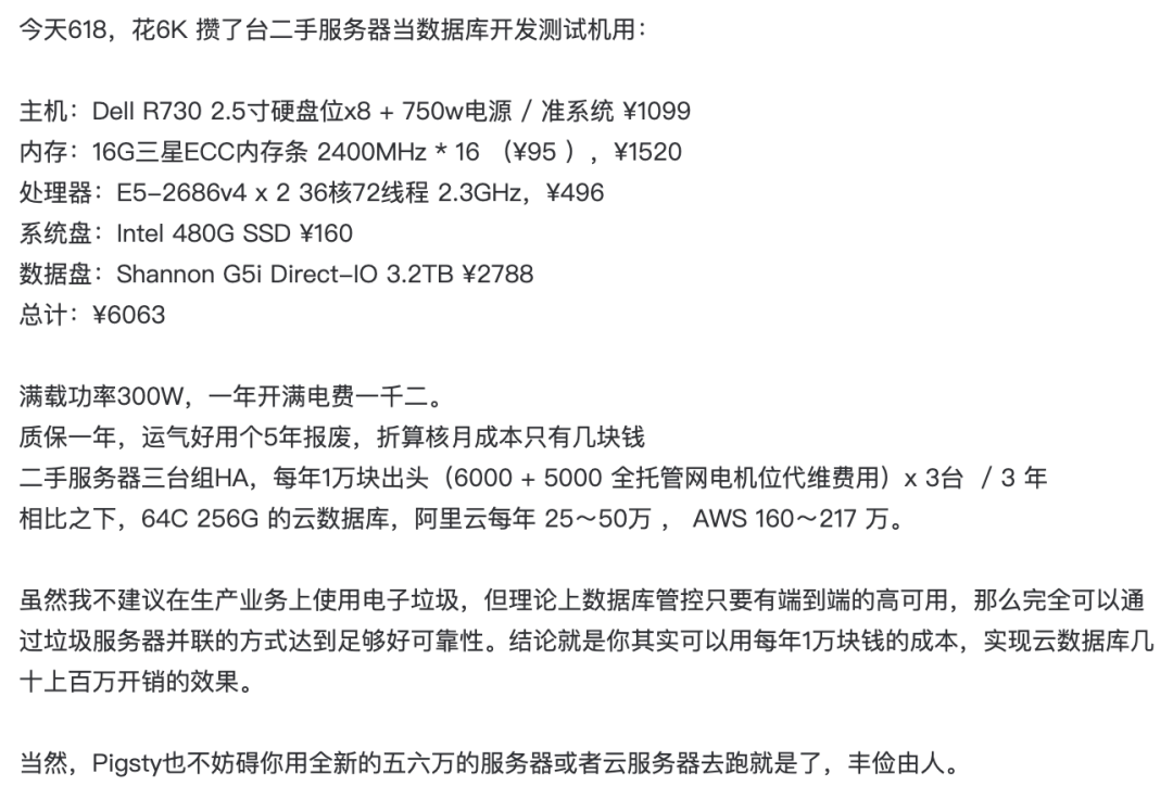 时代在呼唤一个足够好的 RDS 的开源替代品,而这正是我们要解决的问题:让用户可以在任意环境上自建起比肩甚至超越云数据库的本地 RDS 服务 —— Pigsty,开源免费的 RDS PG 替代。帮助用户真正用好 世界上最先进、最成功的数据库 —— PostgreSQL。