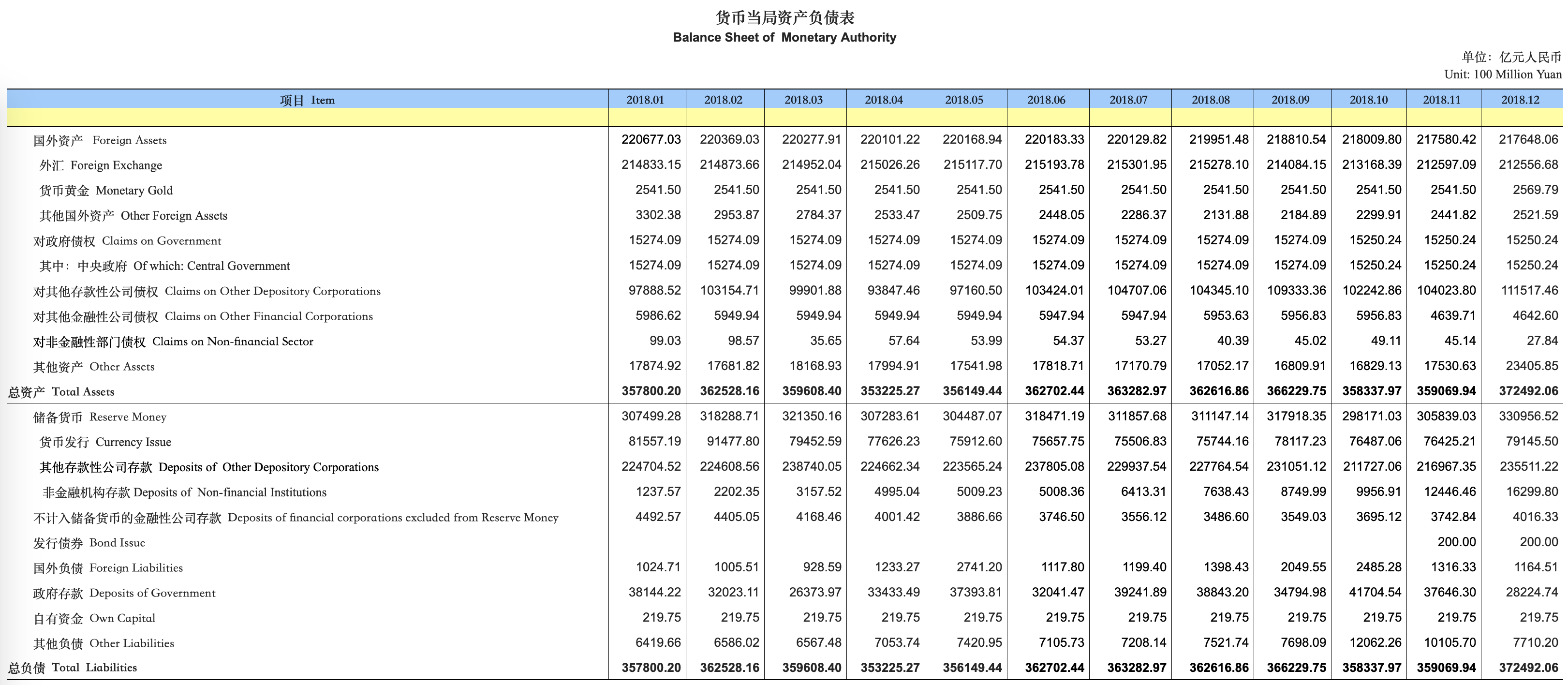 图:货币当局资产负债表,可以看到外汇占款是人民币对应资产的大头