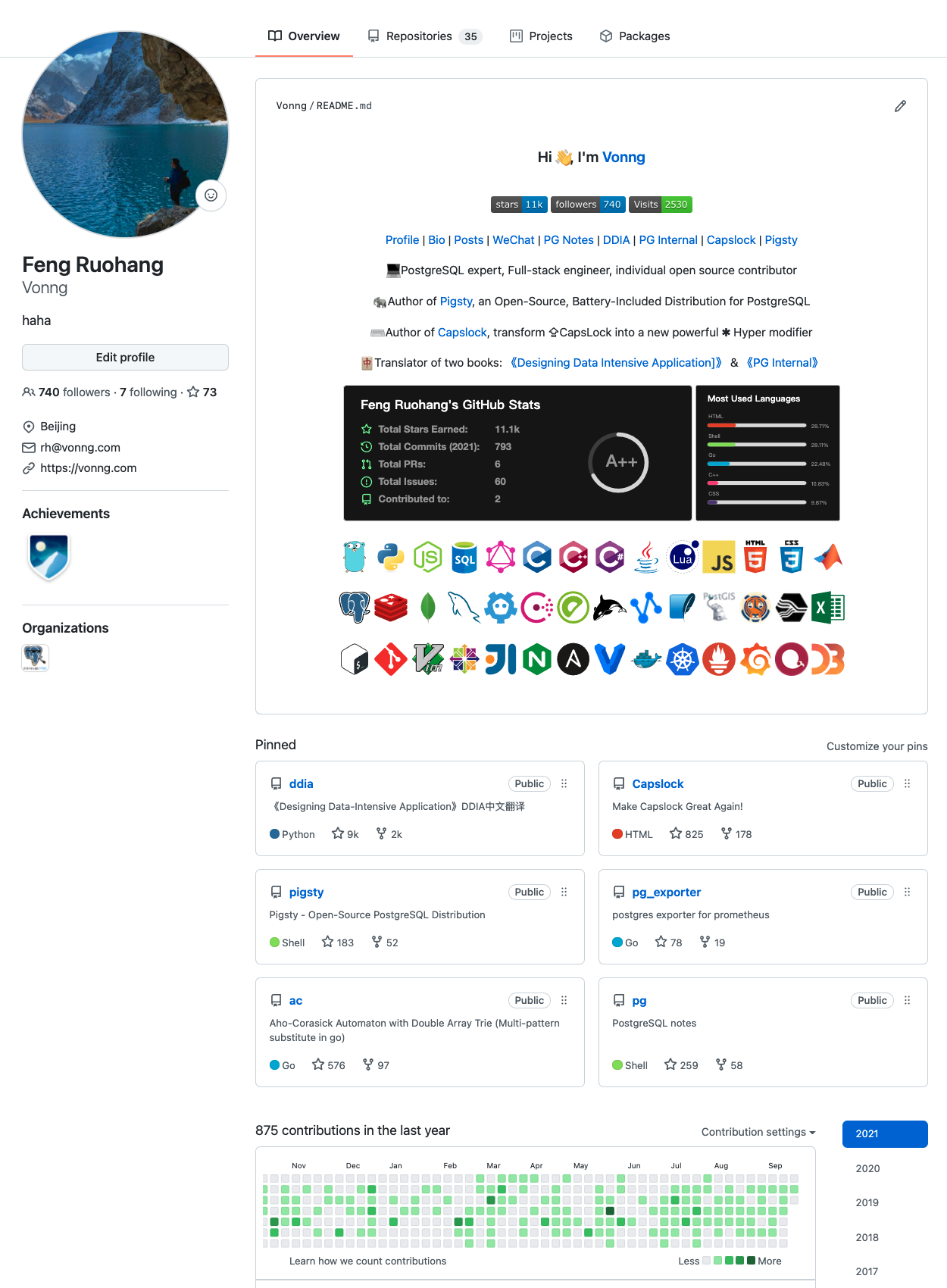 这一年虽然过的很颓废,但工作上倒还搞的不错。最代表性的作品是 Pigsty,这是一个开箱即用的开源数据库发行版,在数据库可观测性上做到了极致,即使在世界范围内也丝毫不虚。 它始于一个做给自己用的软件,慢慢地,有了一些典型行业用户,并开始在业内靠口碑发酵传播,开局还是不错的。假以时日,这也许会成为一个Game Changing的产品。我相信自己的眼光,坚持自己的判断,更重要的是能亲自去实现,Enable & make it happen。