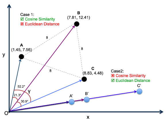语义搜索工作原理如下:你把输入用模型转换为对应的向量,并在数据库中查找与此向量最为相似的结果。相似度使用距离函数进行衡量:比如欧式距离,或余弦距离,结果通常会按距离排序取 TOP K,即 K 个最为相似的对象(K-NN, k nearest neighbors)。