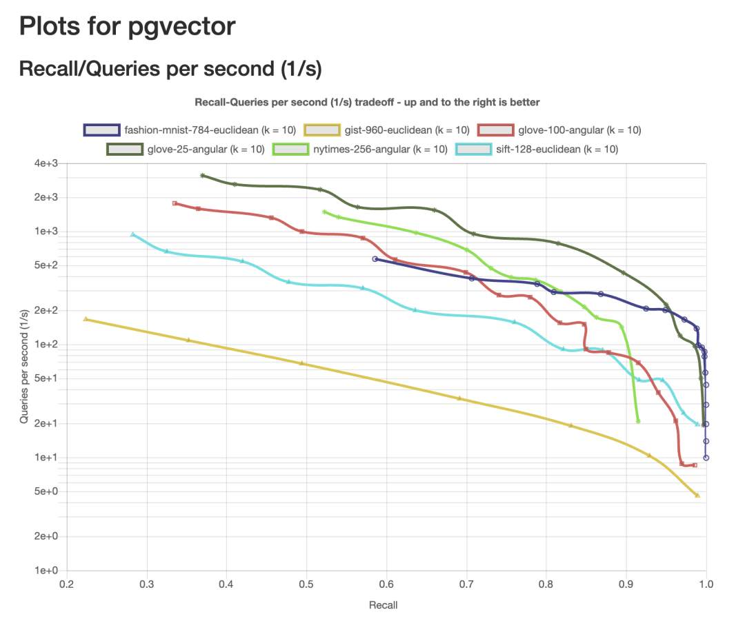 当您使用索引来查询向量数据时,事情可能和您所习惯的 PostgreSQL 数据查询略有不同。由于在高维向量上执行最近邻搜索的计算成本很高,许多向量索引方法选择寻找与正确结果 “足够接近” 的 “近似” 答案,这将我们带入 “近似最近邻搜索”(ANN)的领域。ANN 查询的关注焦点是,性能与召回率两个维度上的利弊权衡,这里“召回率(Recall)”指的是返回相关的结果所占百分比。