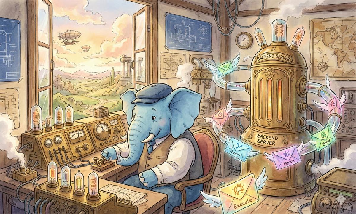 $ psql postgres://127.0.0.1:5433/data?sslmode=disable -c 'SELECT * FROM pg_stat_activity LIMIT 1;'可以观察到这一过程中的消息往来:
