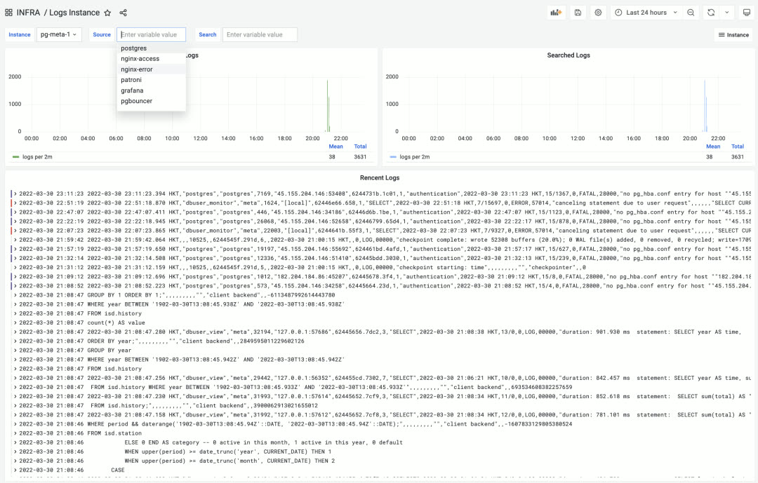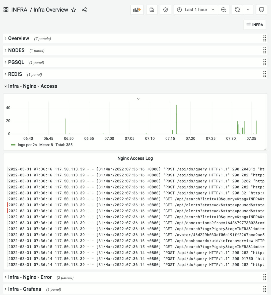 经过一年时间的测试与打磨,Loki 现在已经成为 Pigsty 的默认组成部分,会实时收集各式各样的日志:节点的 syslog、dmesg、cron 日志,数据库 postgres/pgbouncer/patroni 的日志,以及 Redis 日志。