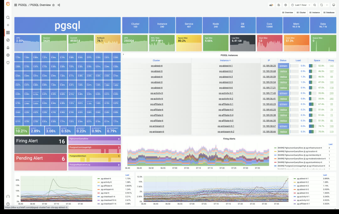 探探主生产环境的 Pigsty 部署:240 实例 13400 核的 PostgreSQL OLTP 集群