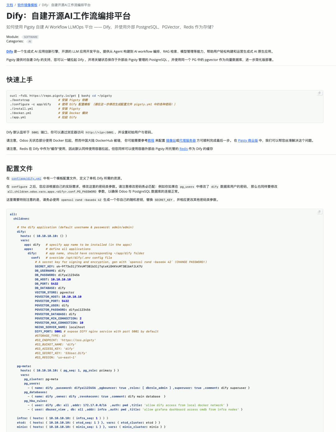 Pigsty v3.3 提供全新剧本 app.yml,将基于 PostgreSQL 的 Docker 软件交付压缩为临门一脚的一行命令。