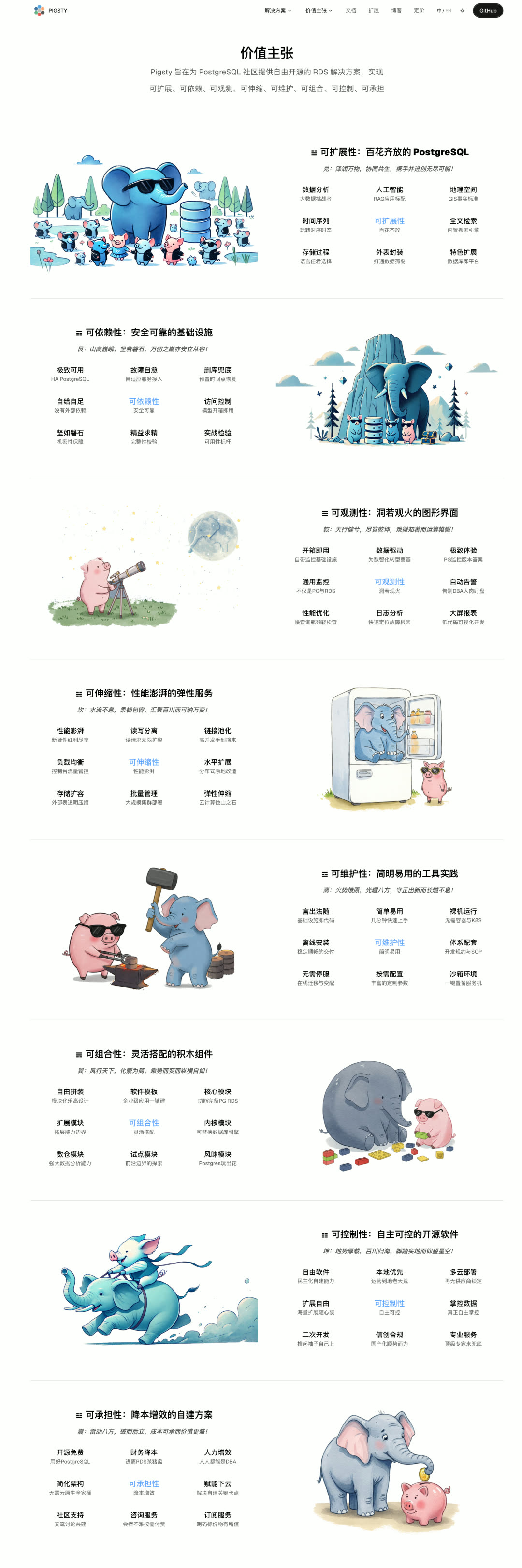 此外,基于 Cursor Vibe Coding 打造了全新的价值主张/特性介绍页面:https://pigsty.cc/about/values/