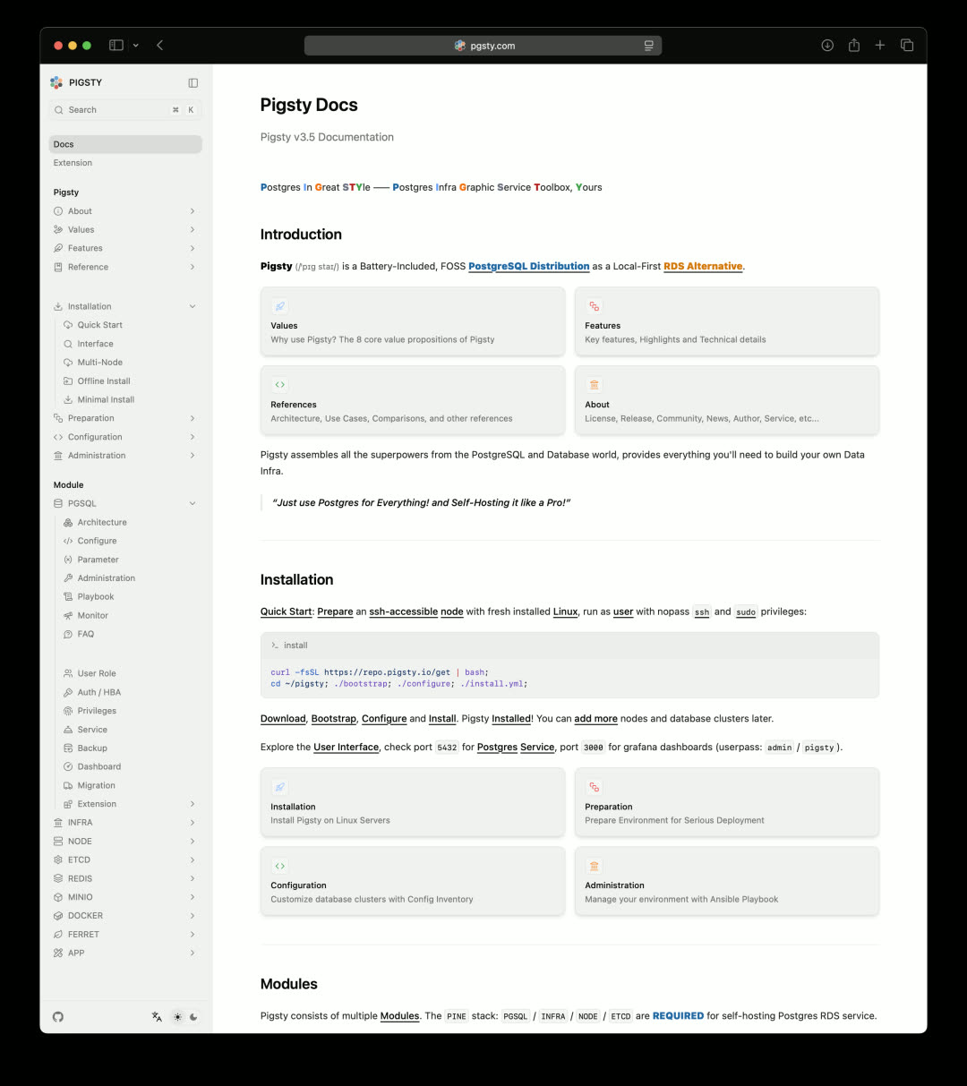 Pigsty 文档站基于 Next.js 进行了重制,从静态页面渲染迈入现代前端时代。新站点地址:https://pgsty.com