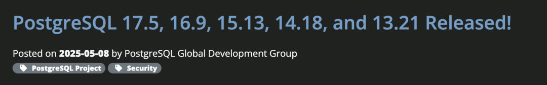 - PostgreSQL 17.5, 16.9, 15.13, 14.18, 13.21