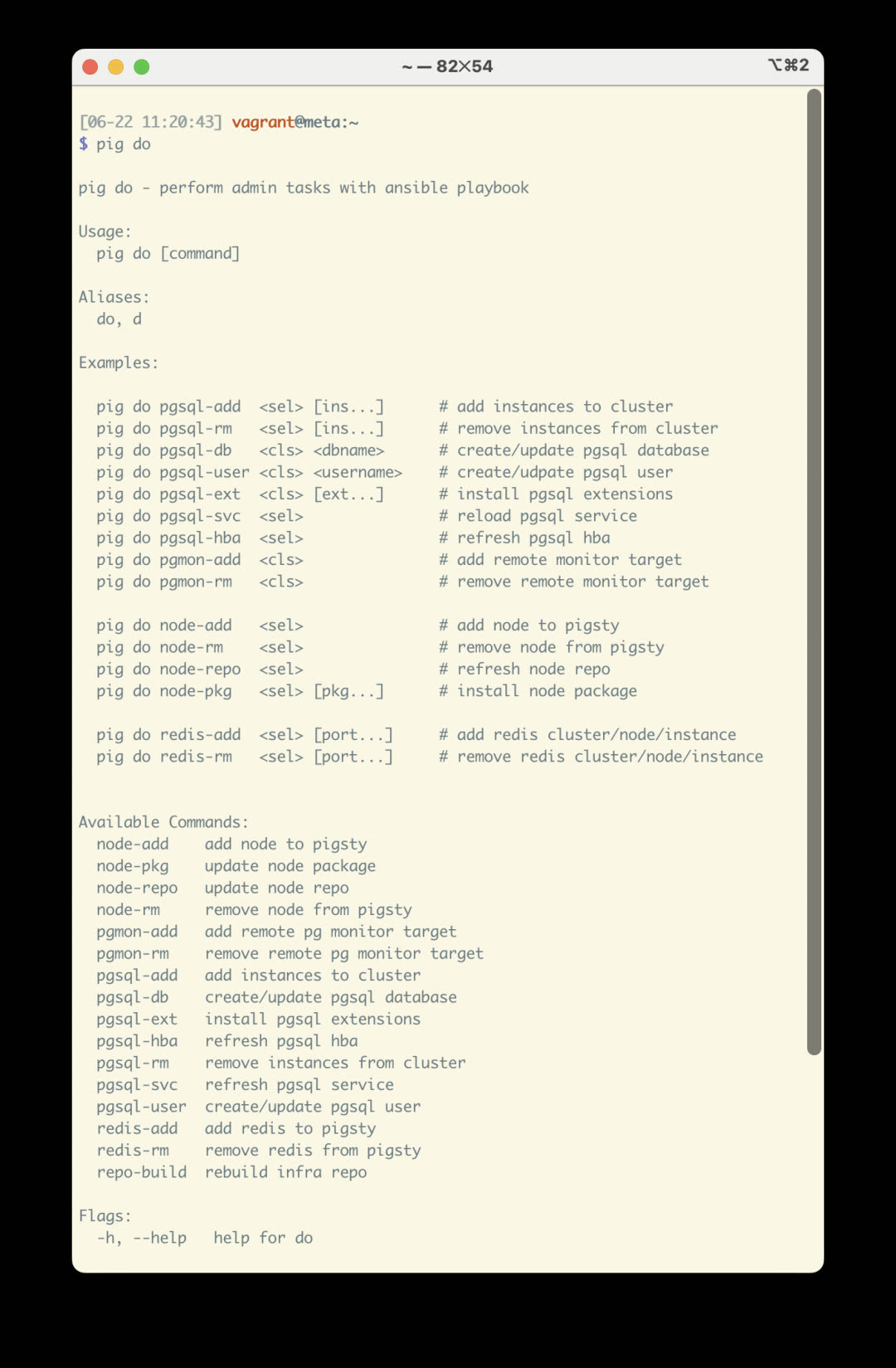 pig 命令行工具新增 do 子命令,可替代原来 pigsty/bin 目录下的包装脚本,以统一、标准化的方式执行各类任务。